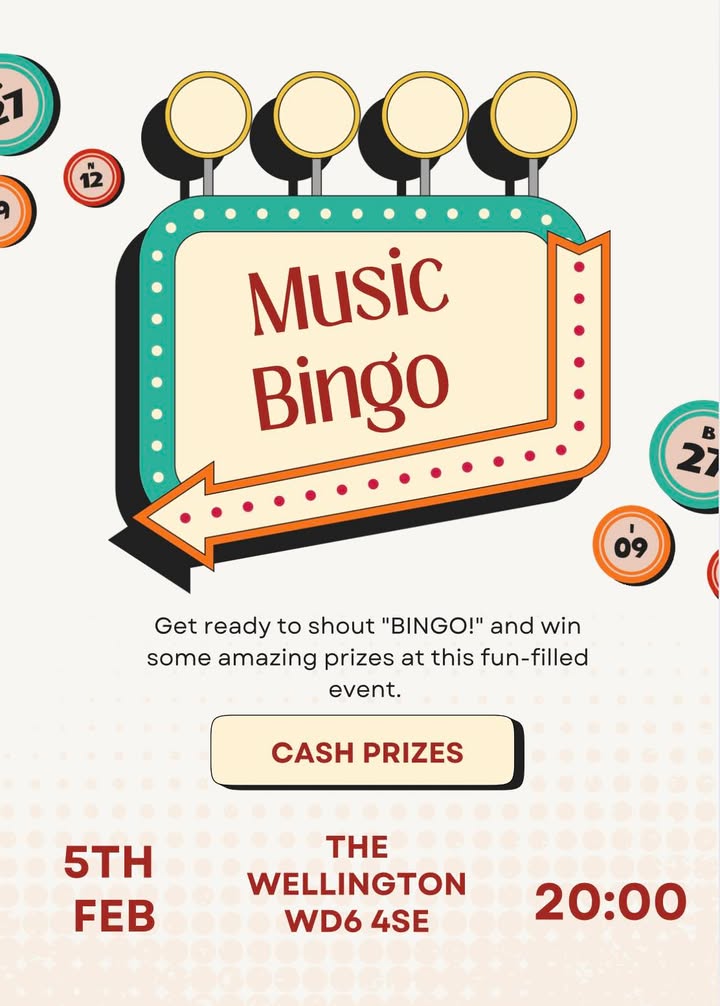 Your favourite event returns! Music bingo with DJ John! £2pp per game A night of all your favourite hits!! Food served until 21:00 so why not brings your friends and enjoy the night!!